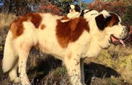 Случается, что под одной крышей с хозяевами поселяются сразу два пса. А ещё бывает, что между ними завязывается настоящая дружба. Именно так и случилось с миниатюрным японским хином и огромным сенбернаром, которые стали неразлучными друзьями. Кажется невероятным, но гигант Близзард, собираясь на прогулку, ждёт пока малышка Лулу запрыгнет к нему на спину. А она и не против!