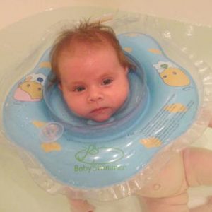 Особенно важно, чтобы в круге для маленького ребенка был фиксатор подбородка, тогда вода не попадет в организм ребенка. До двух лет детям рекомендуются круги по типу ходунков, с прорезями для ног. Таким образом, создается препятствие для переворотов ребенка.
